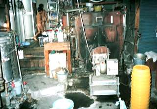 ボイラー室の事です。兼業銭湯の浅草湯では、人件費節約のため重油のボイラーを使用していますが、高崎市の大多数の銭湯では雑燃(おがくず・廃材・解体材等)を燃料にしています。