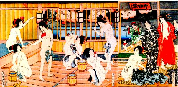 これも遊郭の内風呂ですが、こちらは入浴姿を描いています。